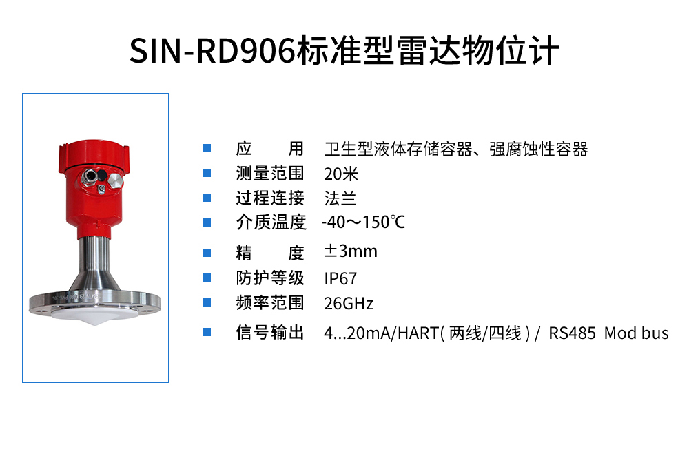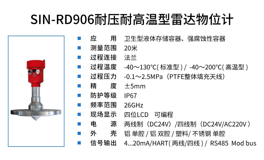 您的位置:首頁(yè) > 雷達(dá)液位計(jì) → SIN-RD906雷達(dá)液位計(jì)_適用于衛(wèi)生型液體存儲(chǔ)容器_