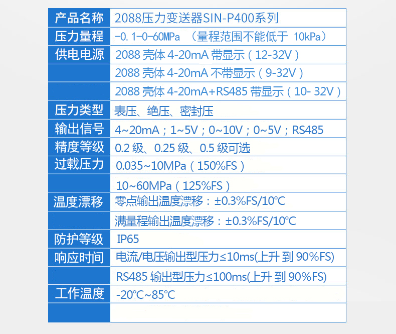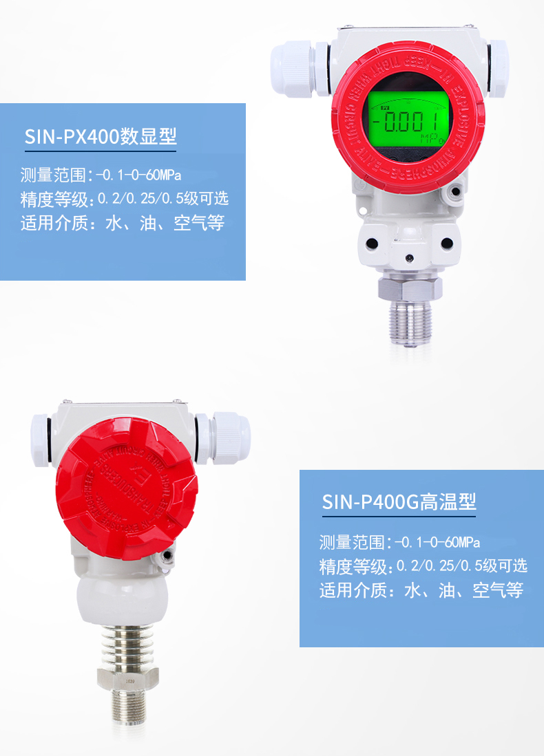 SIN-P400壓力變送器,采用全數字電路板,做到用戶可在一定范圍內自行現場修改量程,極大的方便了現場使用。